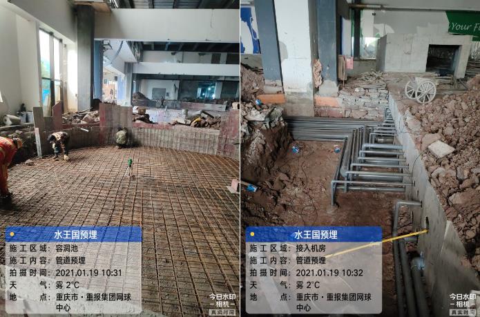2021年3月底,由我司全面負責(zé)設(shè)計、施工的水王國項目,完成男賓池、女賓池、兒童池、沖浪池、成人水療池的管道預(yù)埋工作及機房套管預(yù)埋工作。接下來將進行熱媒水管道安裝、機房設(shè)備就位及系統(tǒng)管道安裝工作。